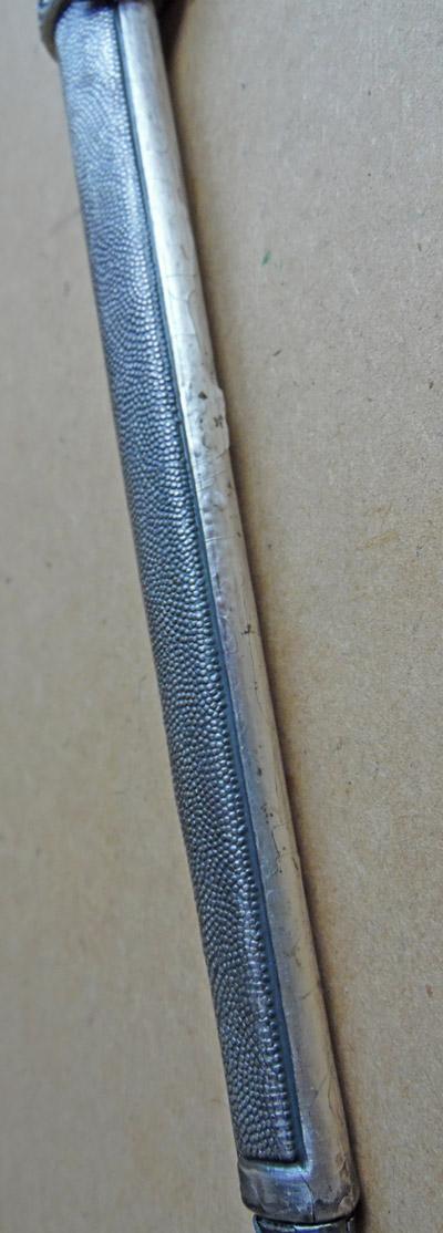 Original scabbard.Complete with throat screw.There is a stress fracture as shown in the images.In serviceable condition.