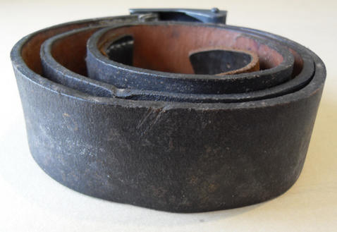 Steel buckle retains all of its original blue paint.Solid quality leather belt.Size 95cm.In Very Good condition.