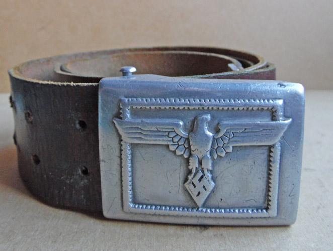 As worn by students at the Napola political training schools.Aluminium buckle.RZM stamped.Maker marked M4/38 for Richard Sieper & Sohne.Brown leather belt with distinctive belt hook.Measures 100cm.A rare set to find complete.In Good Condition.